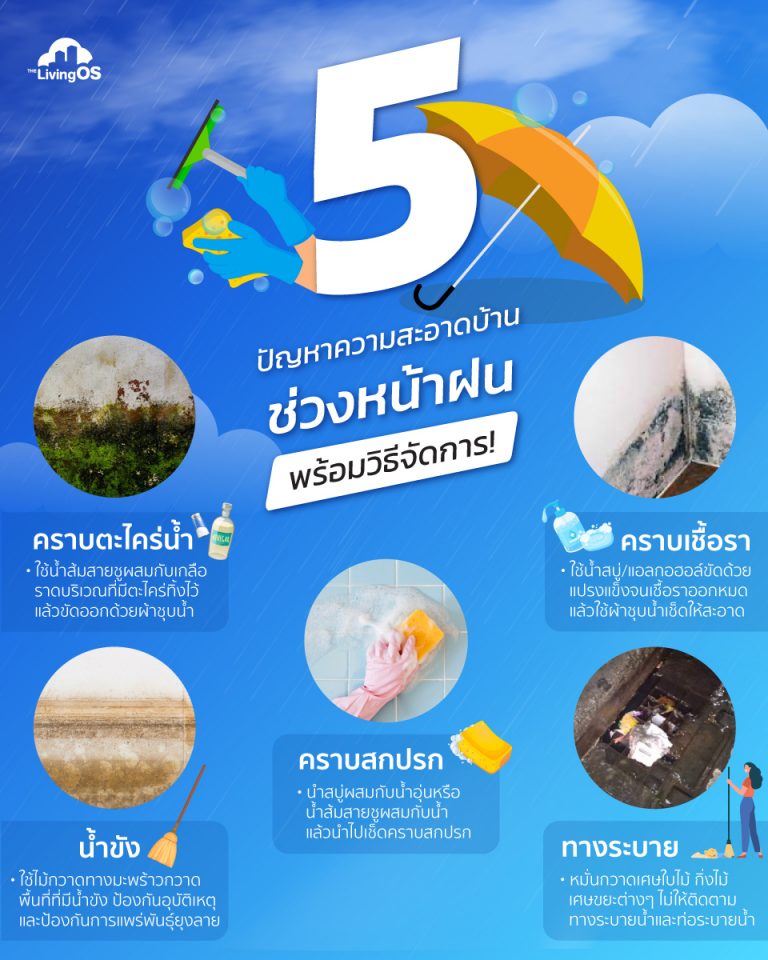 จากฝนที่สาดเข้ามาบริเวณบ้าน รวมถึงฝุ่น และสิ่งสกปรกต่างๆ