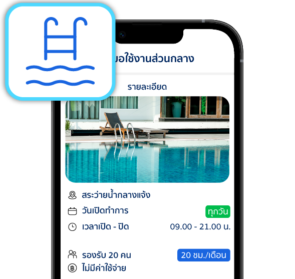 ระบบช่วยควบคุมดูแลพื้นที่ส่วนกลาง ดูสถานะพื้นที่ส่วนกลางทั้งหมด ลดปัญหาการจองพื้นที่ส่วนกลางซ้ำซ้อน การจองเกินจำนวน และการเข้าใช้ส่วนกลางเกินเวลา