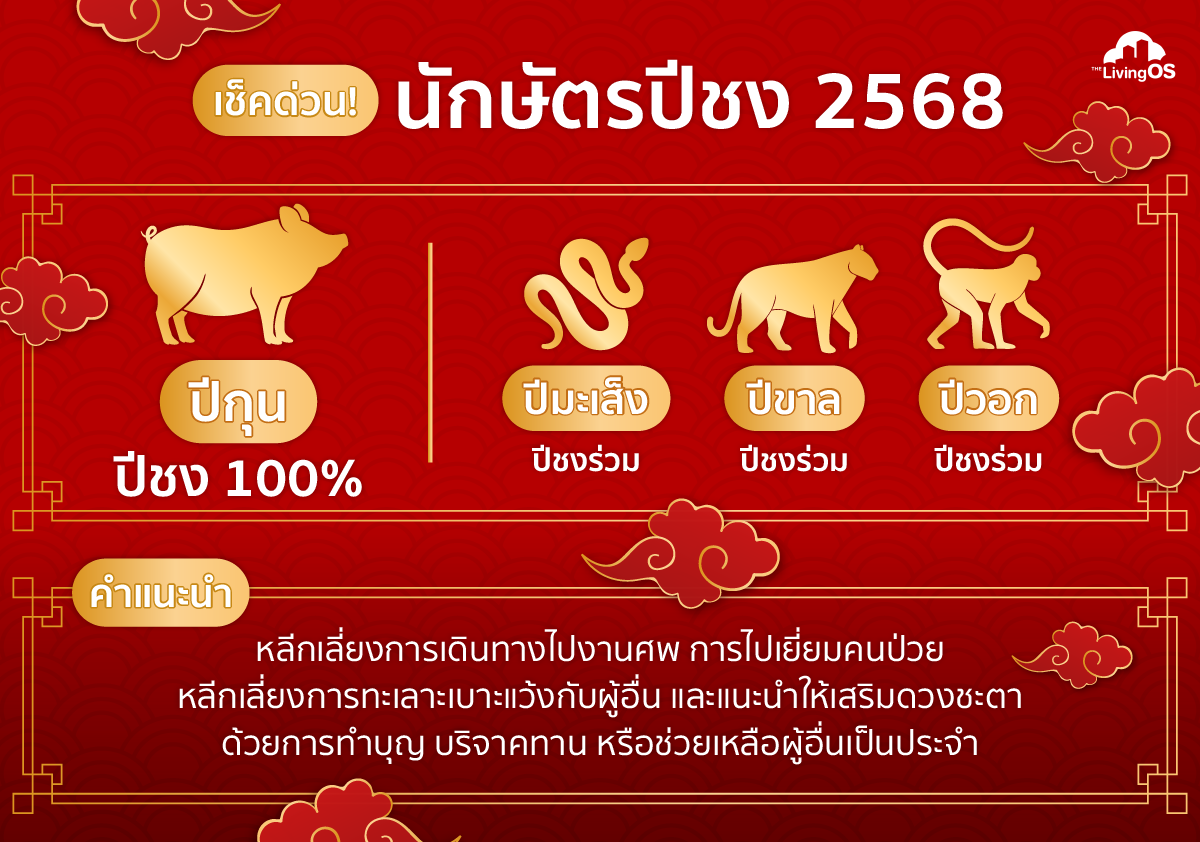 ได้เวลาเข้าสู่ช่วงนับถอยหลัง เพื่อไปเริ่มต้นปีใหม่ 2568 กันแล้ว! วันนี้ The LivingOS ขอพาเพื่อนๆ ทุกคนมาเปิดรายชื่อนักษัตรปีชง สำหรับปีพ.ศ.2568 นี้